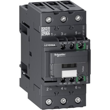 Contactor Tripolar TeSys D Green – 20HP(220V)/40HP(440V) – 50A(AC3) – 1NA+1NC – Bobina 24-60VAC/DC – LC1D50ABNE – SCHNEIDER